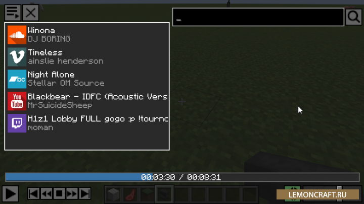 Мод на проигрывание стриммов Note Block Player пригодится для игроков, которые любят слушать аудио-стримы с каналов Youtube, Twitch.tv, Vimeo, Soundcloud и Bandcamp и одновременно играть в игру майнкрафт. Что бы прослушать стрим, вызовите меню мода кнопкой Р и вставьте ссылку на понравившийся вам стрим.