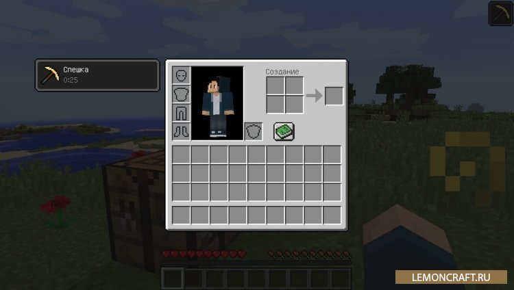Появилась новая модификация, позволяющая вам крафтить кольцо скорости, которое позволяет увеличить скорость разрушения различных блоков. Время действия баффа составляет 30 секунд, чего вполне достаточно для любой поставленной задачи ( к примеру, подготовки места для строительства, рытье туннелей и т.д). Позволяется существенно экономить время, отличия в скорости разрушения заметны сразу. Кольцо одноразовое, после применения сразу сломается.